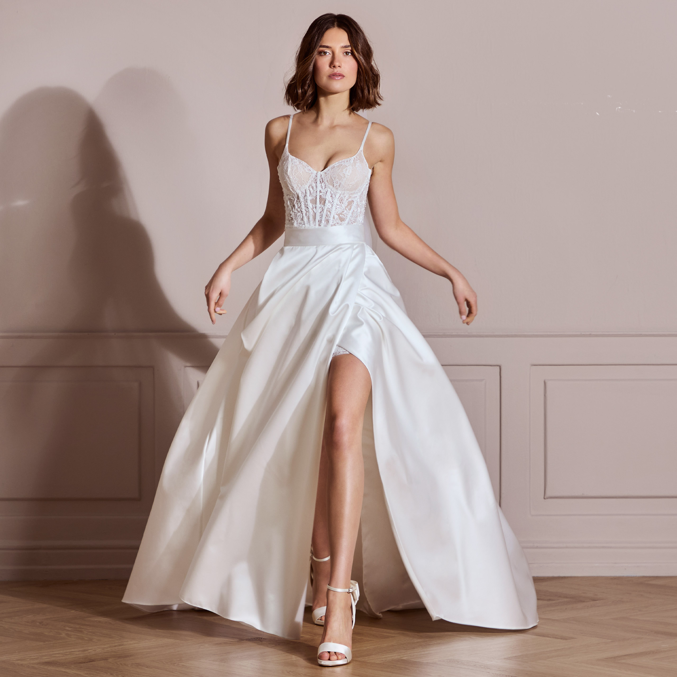 Absolutely. Detachable elements like overskirts, sleeves and capes are central to our Mix & Match by LILLY concept, allowing brides to transform their look from ceremony to celebration.