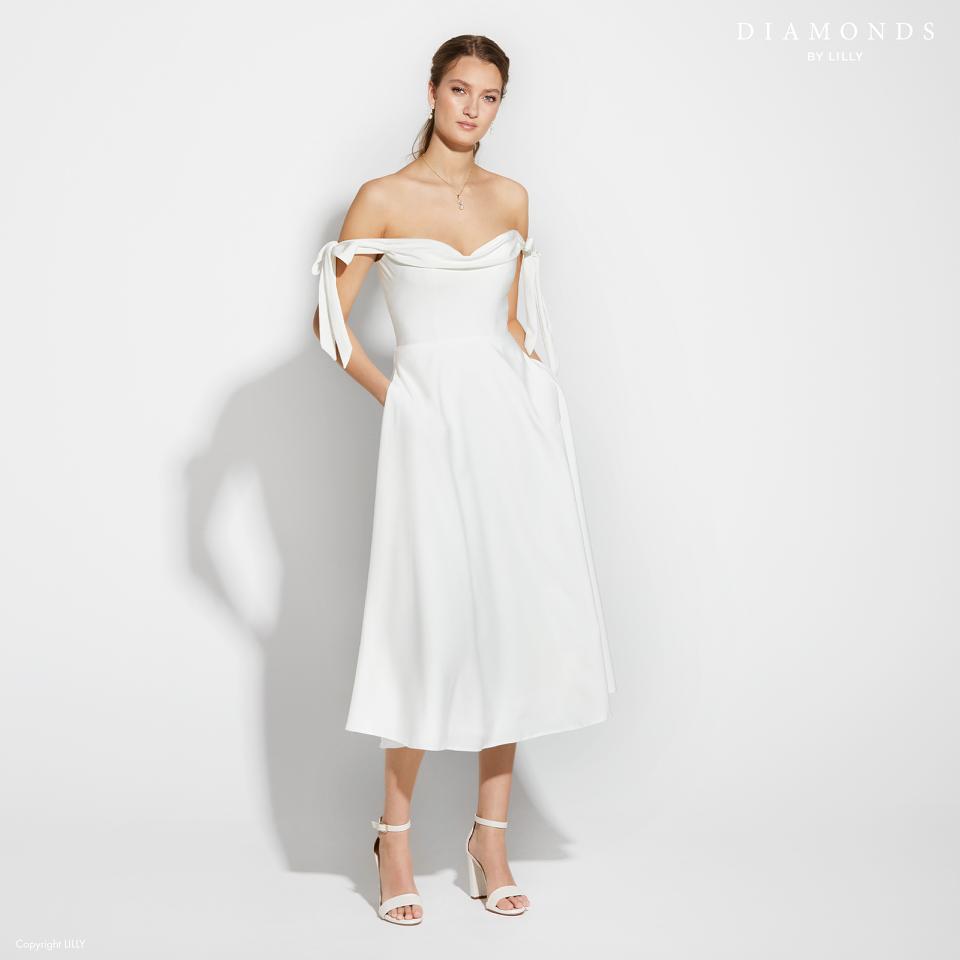 The DIAMONDS by LILLY collection, is a range of stylish dresses in min/midi length, specifically designed for brides having a "far-and-away" destination or micro wedding.