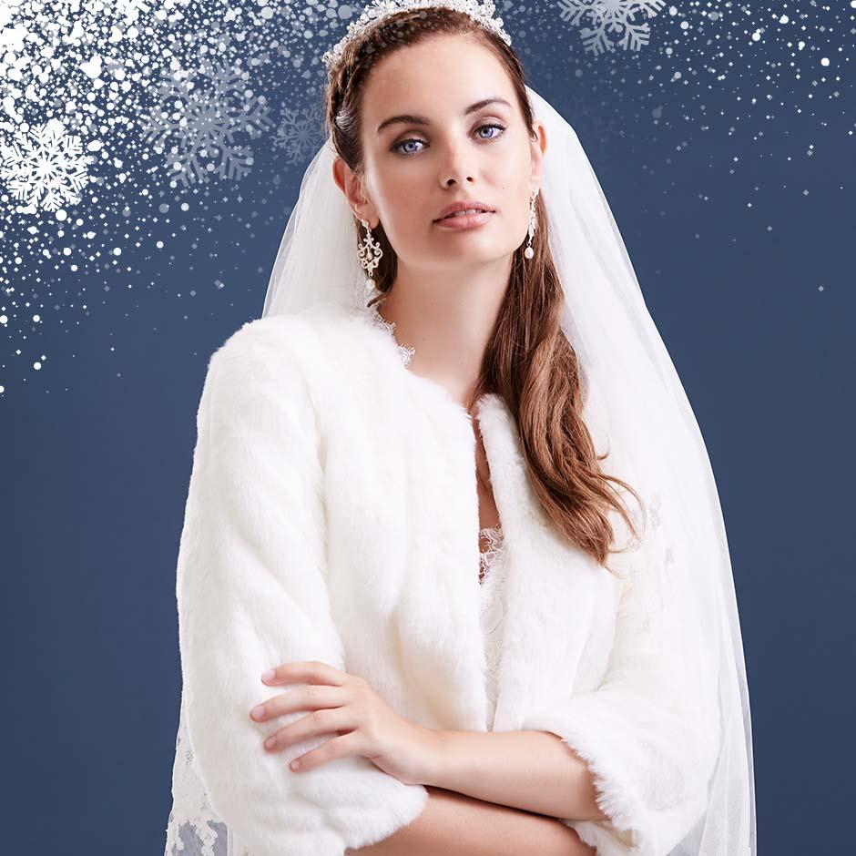 Winter photo-op in front of the church or in the wintry garden? Defy the frosty temperatures and go for a radiant look in our 'faux' fur cape or bolero – cozy, warm and beautifully wrapped.